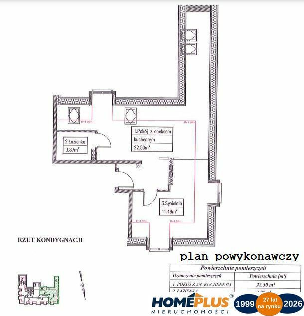 m², 2. Sypialnia: 11,49 m², 3. Łazienka: 3,87 m²