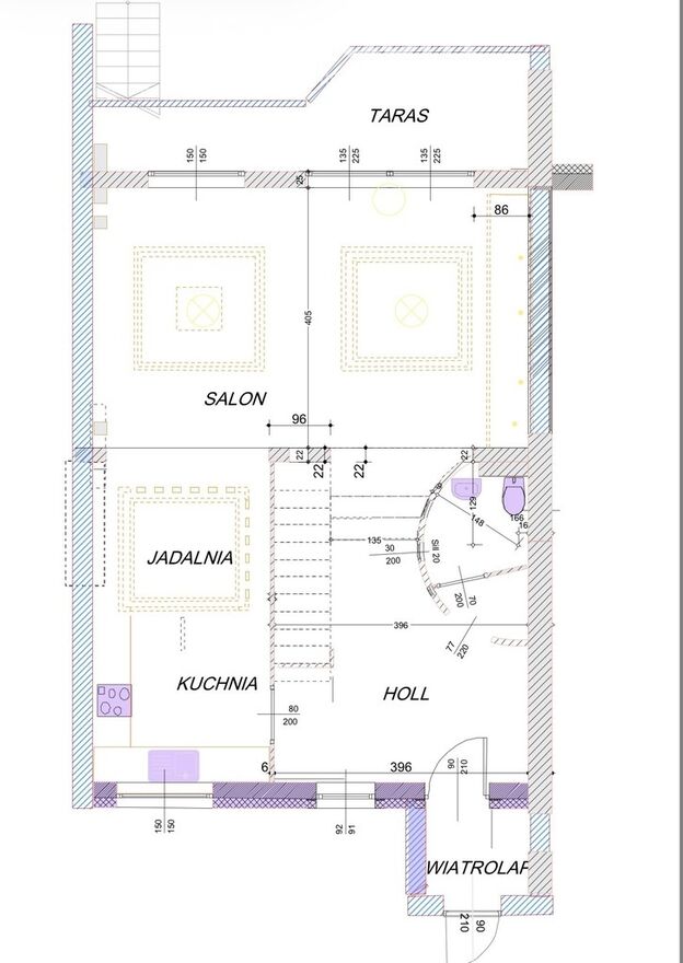 Podłogi: Na parterze w salonie i jadalni położono deskę z orzecha