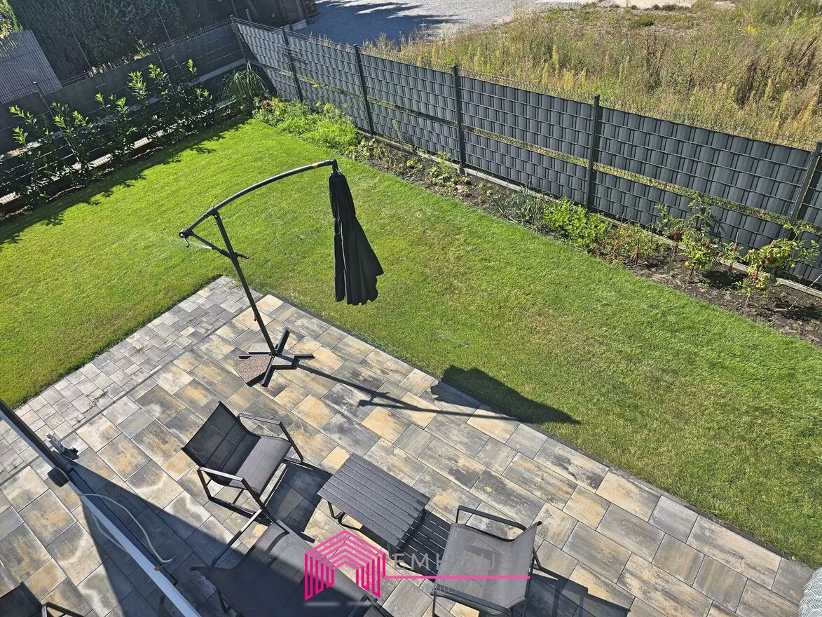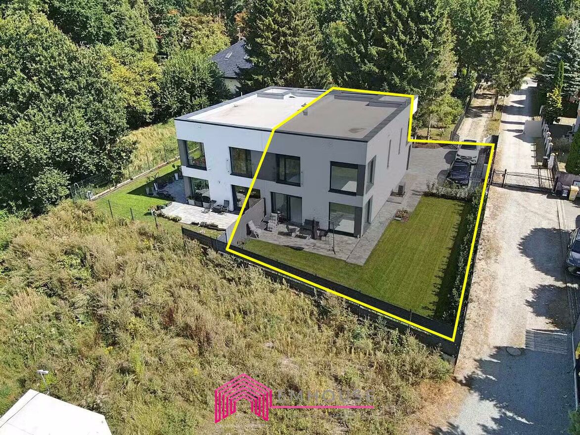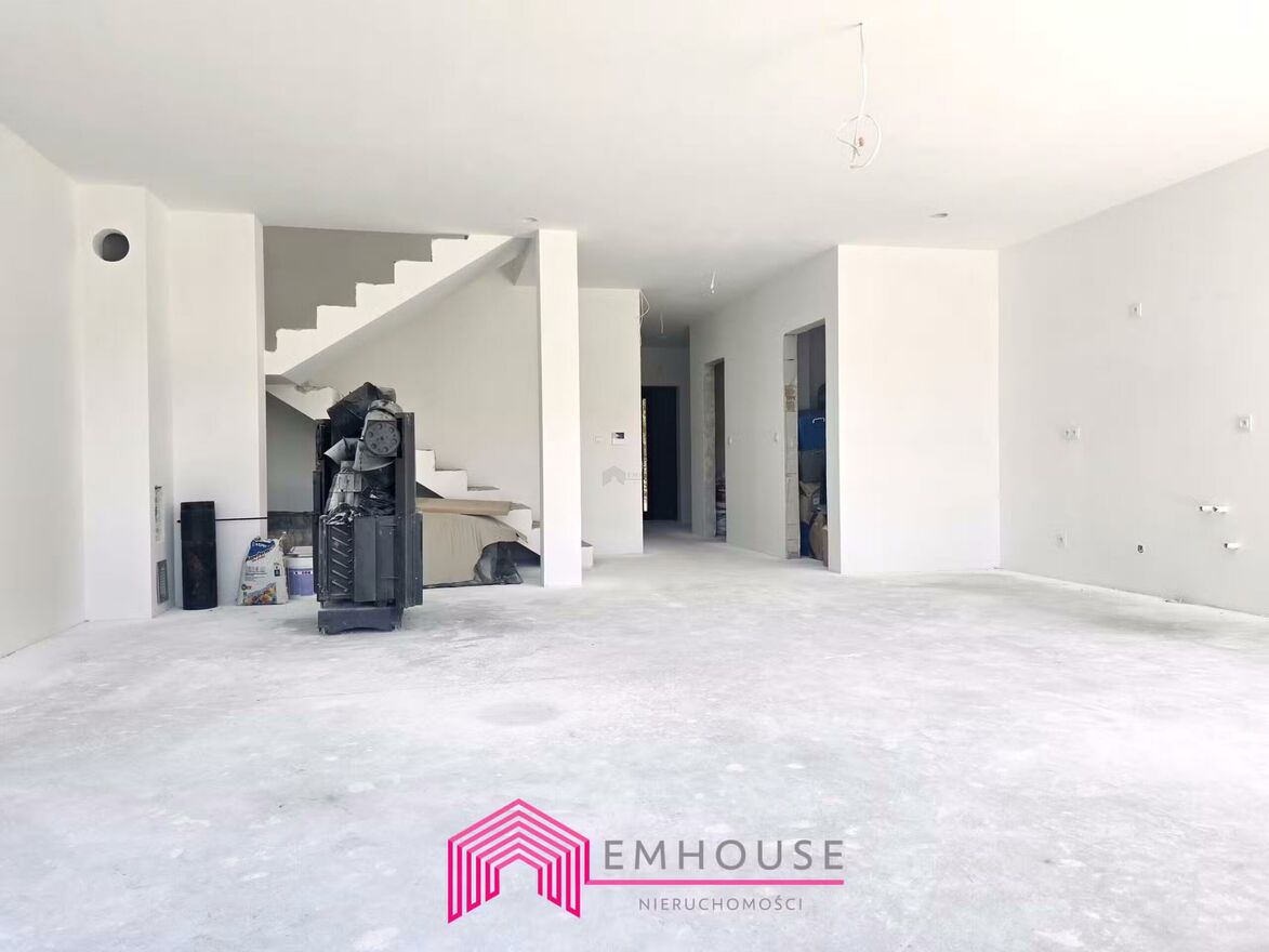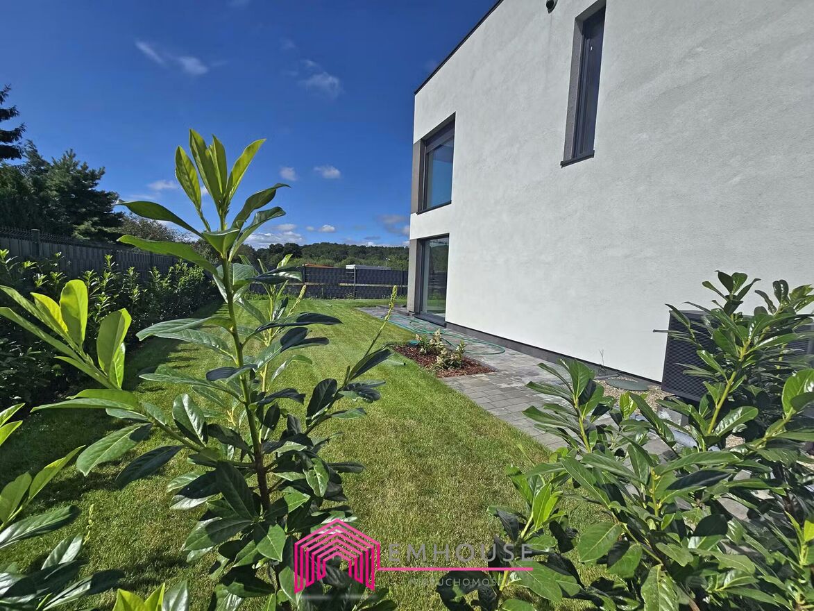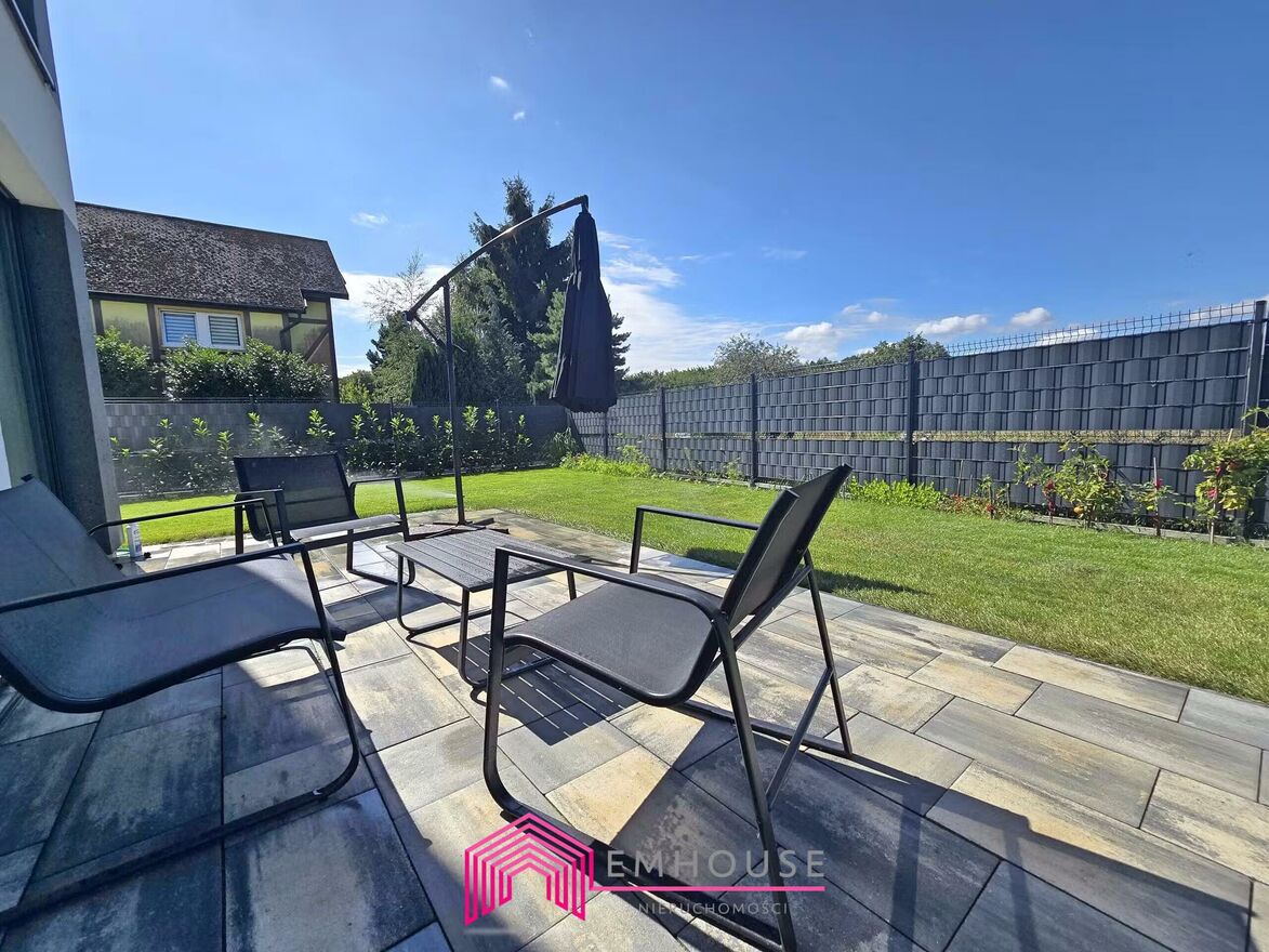 Na sprzedaż połowa nowoczesnego bliźniaka w standardzie deweloperskim o pow. 157,85m2, Obszar całej nieruchomości 0,1130 HA.Dom do własnej aranżacji, ściany - gładź pomalowana na biało, elewacja zewnętrzna wykończona. Teren ogrodzony z pięknym ogrodem, trawa oraz liczne nasadzenia. Na tarasie, podjeździe i parkingu położono mrozoodporne płyty.