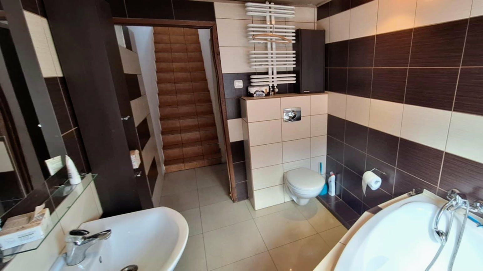 Dom w zabudowie szeregowej z garażem o powierzchni ok. 128.5m2.Wchodząc do domu odkrywamy dużą osobną kuchnie i spory salon z wyjściem na taras i zejściem na ogródek i do garażu .W kuchni znajdziemy również schody do sporawej piwnicy gdzie znajduje się piec na drzewo/węgiel (roczny koszt opalu ok 2.5tys) dodatkowa toaleta i prysznic oraz przejście do garażu .Idąc wyżej na tak zwanym półpiętrze znajduje się w pełni urządzona łazienka z duża wanna i toaletą .Kontynuując podroż w górę zastaniemy duży pokój w literę L (kiedyś były 2 sypialnie).Podążając w górę na ostatnim piętrze naszym oczom ukaże się spore pomieszczenie z antresolą .Z ciekawostek dach bym wymieniany 6 lat temu .Podsumowując dość fajna nieruchomość dla sporej rodziny gdzie każdy znajdzie kąt dla siebie w cichej lokalizacji Świnoujście Warszów . Bliska odległość do plaż.