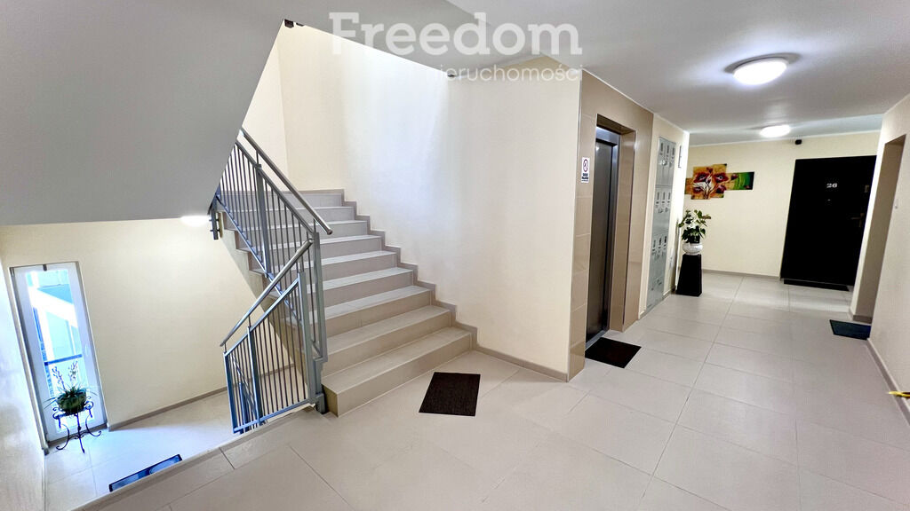 klatki, nowoczesna winda i duże przeszklenia na klatce schodowej.