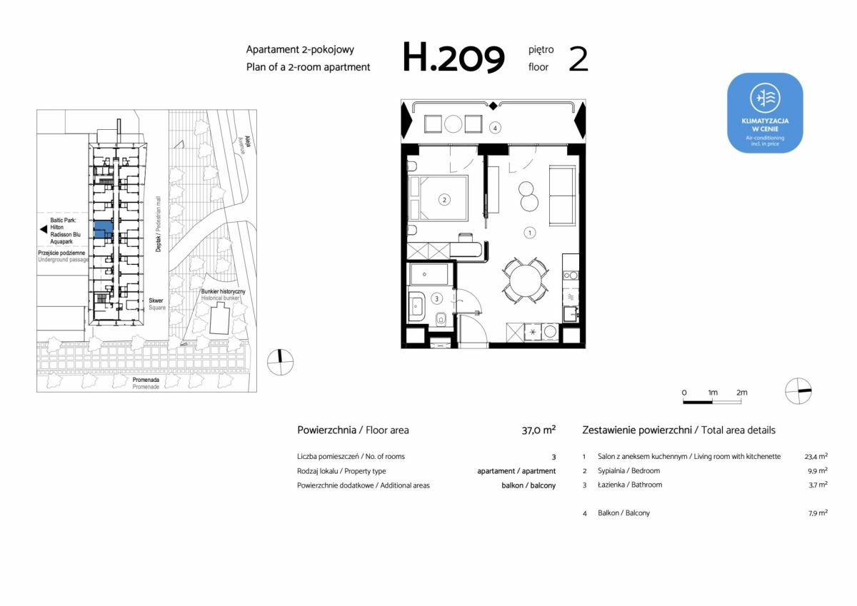 - Każde mieszkanie posiada klimatyzację.