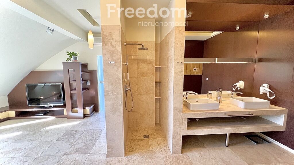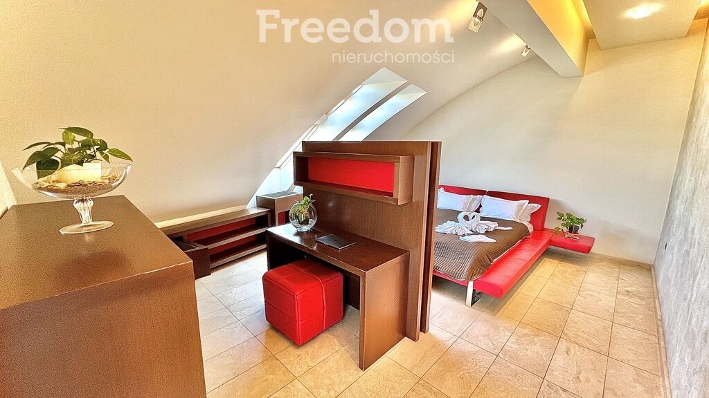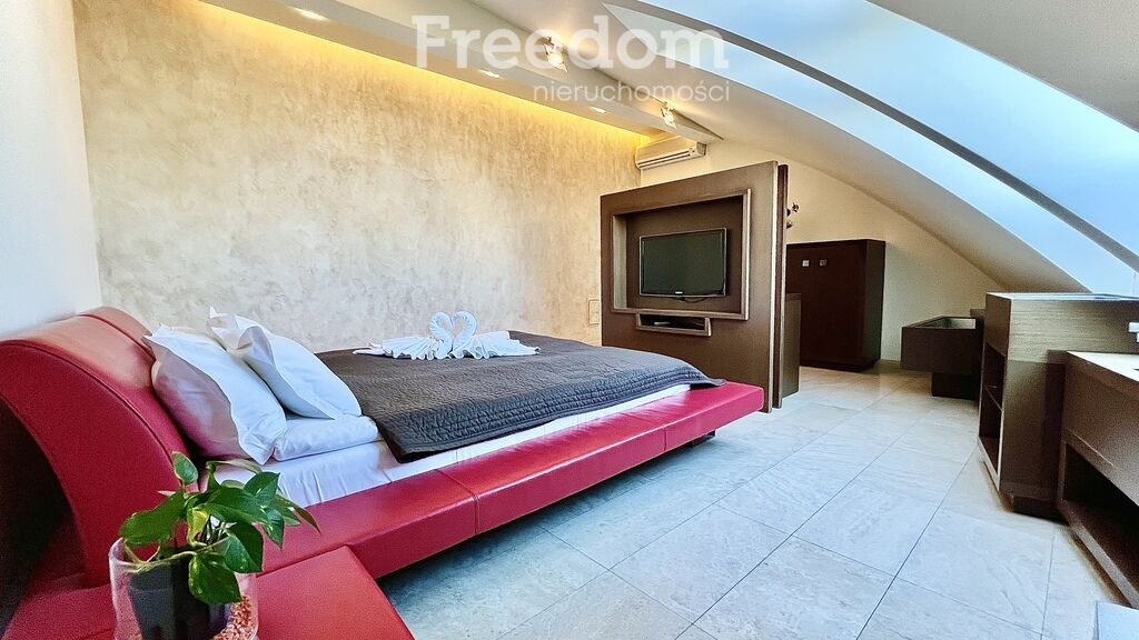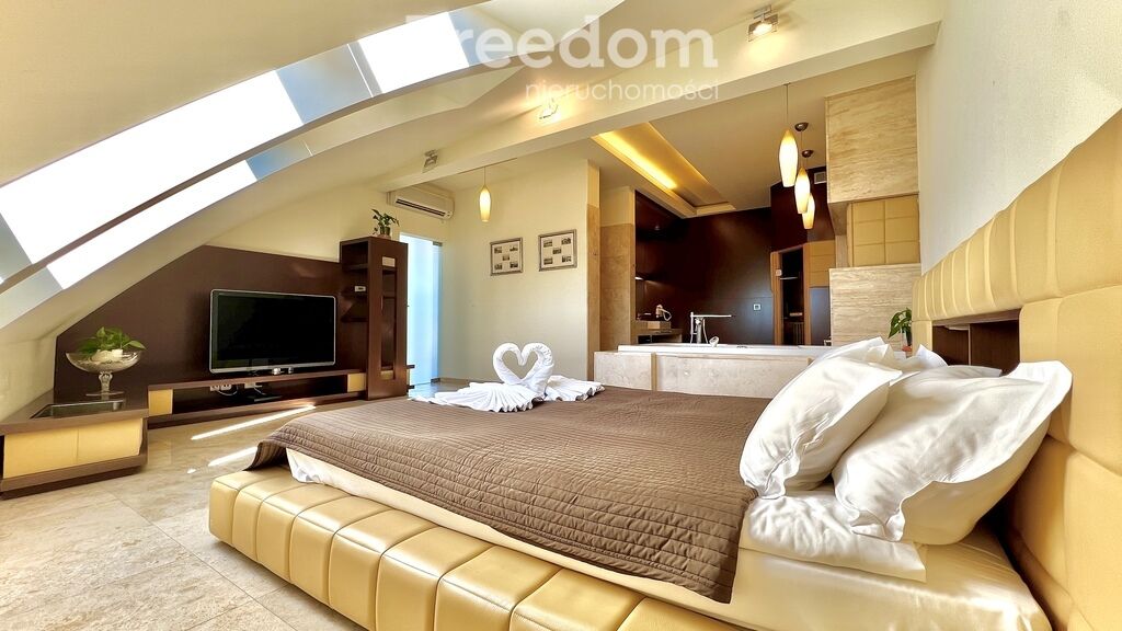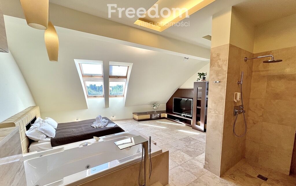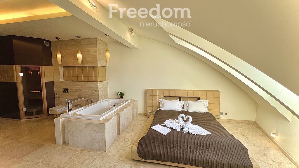 - Sypialnia główna: 24 m² z łazienką wyposażoną w saunę,