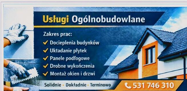 Oferuję usługi budowlane w zakresie Docieplenia budynków Układanie płytek Panele podłogowe Montaż okien i ...