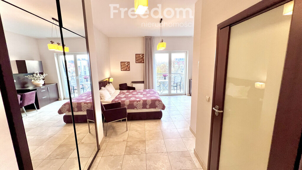 Apartament wykończony w eleganckim, hotelowym stylu, z dominującym